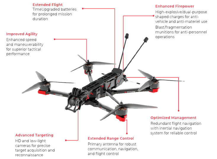 SAGAN can be used for precision-guided attacks on enemy infrastructure, vehicles, equipment, or personnel. These drones allow for highly targeted strikes, reducing the risk to human pilots and minimizing collateral damage compared to larger weapons.