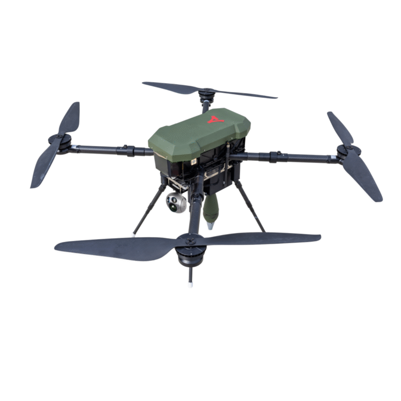 With close air support capability for critical infrastructure and dynamic combat zones, the 6×40 mm system delivers explosive firepower from above, enabling rapid neutralization of threats while minimizing troop exposure. Its launcher rotates between +5° and –90°, allowing for precise targeting of both elevated and ground-level threats in complex terrains.